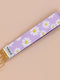 Carry a little piece of sunshine wherever you go with the PERA handmade daisy wristlet keychain. The exterior is adorned with a playful daisy floral print on a dreamy lilac background. Bonded to a sturdy, solid lilac webbing on the inside, it's finished with elegant, polished gold-tone hardware.