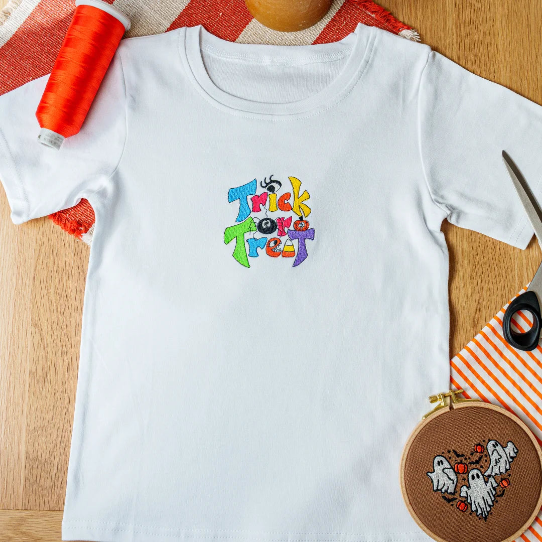 Jack With Pumpkin Embroidery on Combed Cotton Kids T-shirt. %95 Cotton %5 Spandex