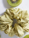 Our silk scrunchie is handmade for you using high-quality material that feels very soft on your hair. It is lightweight and light green in color. The closing stitches are made using metallic thread that matches the fabric for a more luxurious look.