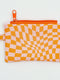 Discover the PERA handmade mini wallet, where retro charm meets modern design. Featuring the popular and eye-catching warped checkerboard pattern in a warm and playful combination of orange and peach, this wallet adds a vibrant touch to your style. Designed to securely hold your daily essentials like cards, cash, and coins, even your earbuds. Matching wristlet keychain available.