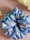 Our satin scrunchie is handmade for you, using high-quality material that feels very soft on your hair. Lightweight fabric in a gray color with mini flowers. The closing stitches are made using a metallic thread that matches with the fabric for a more luxurious look.
